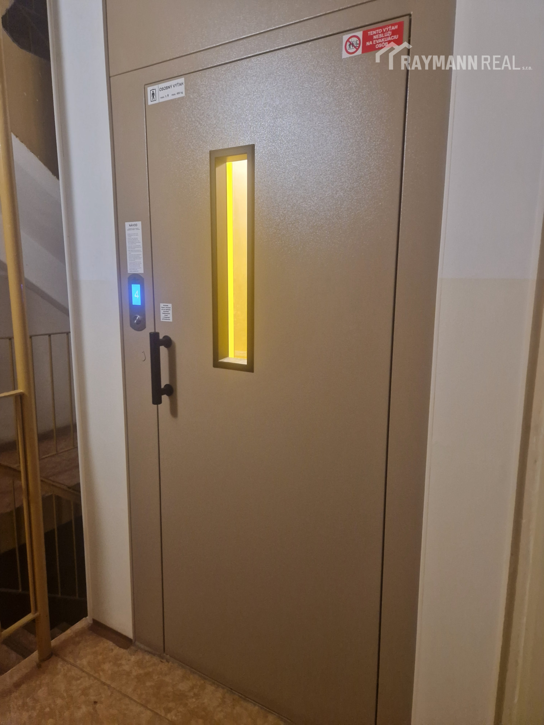 Byt sa nachádza na 4 / 7 poschodí v bytovom dome s novým pekným zrekonštruovaným výťahom .