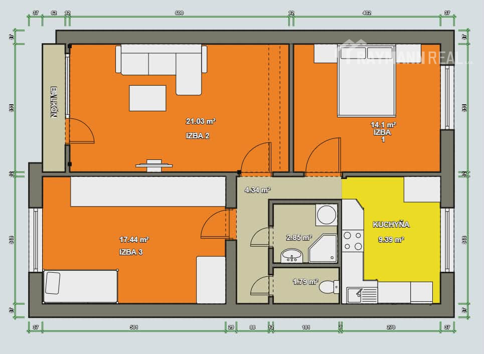 | Typ bytu: | 3-izbový byt |
